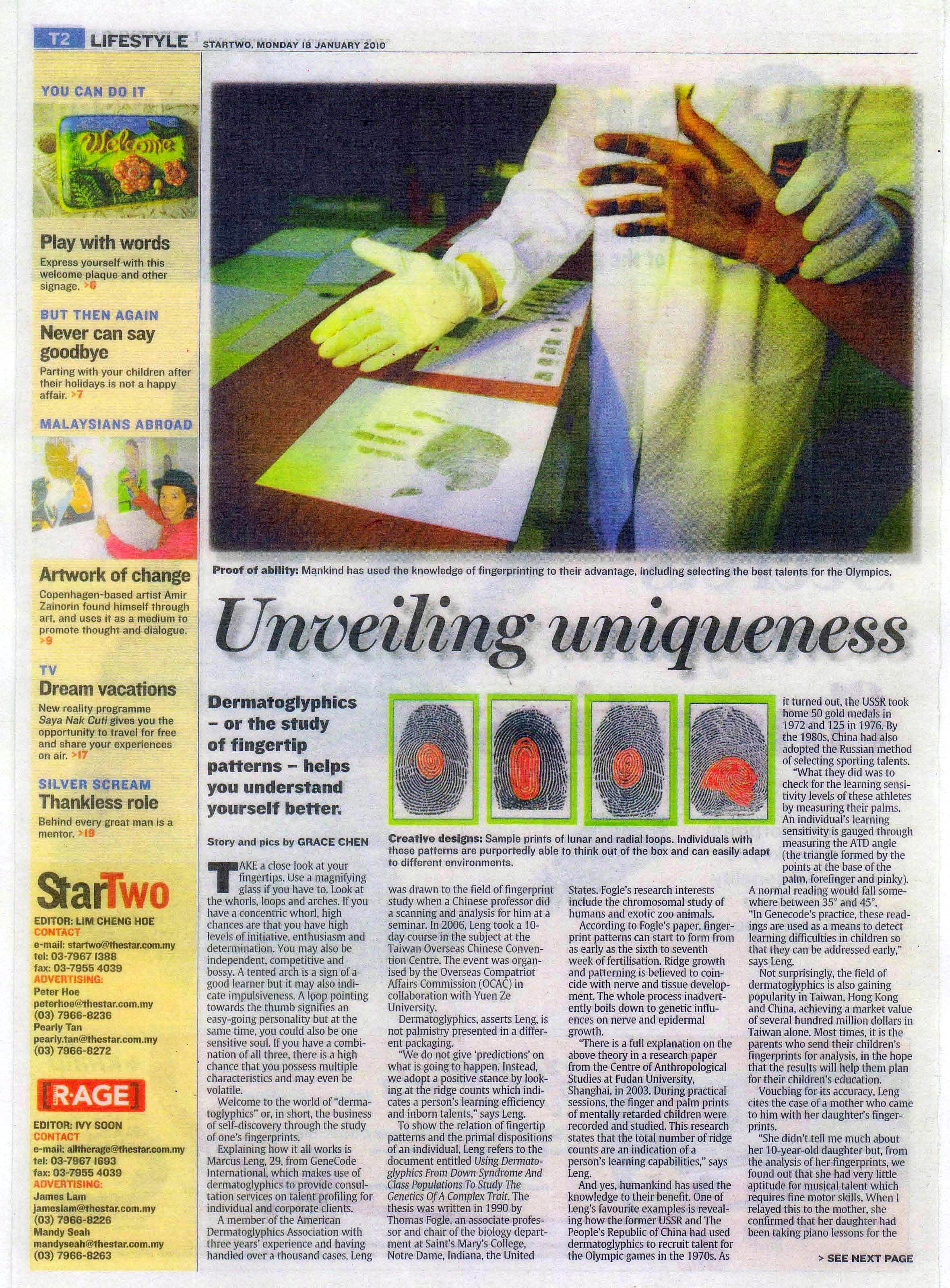 2010年 - 担任 GENECODE International 教授皮纹分析。
