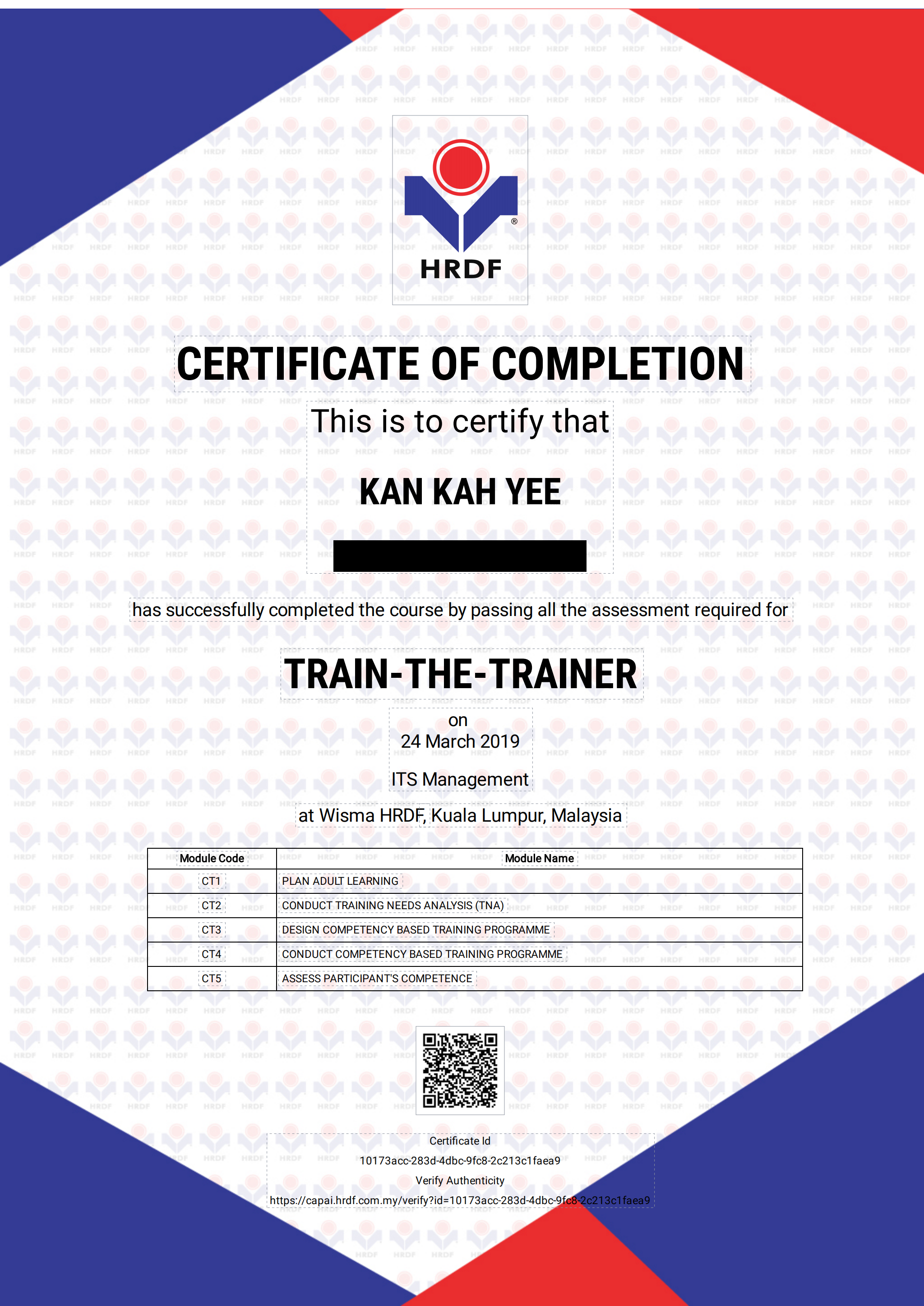 2019年 - 被任命为 Entregene PLT (Msia) 的首席培训师。
